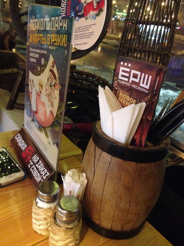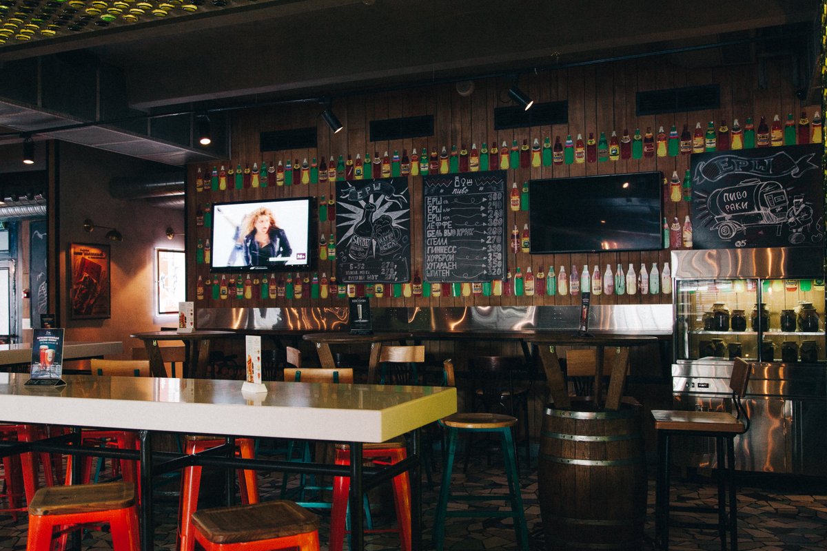Наше заведение - ресторан Ёрш - это винный бар и пивной ресторан. У нас вы можете провести время за общением в компании или просто как следует отдохнуть после рабочего дня, в чём вам с удовольствием помогут наши первоклассные бармены и наше меню - мы приготовили напитки по вкусу и кошельку! Вам нужно лишь рассказать, что предпочитаете: крепость и вкус (сладкий или горьковатый). Чтобы ваш бокал не пустовал, мы предлагаем большой выбор сухих, полусладких, крепких вин из различных сортов винограда.