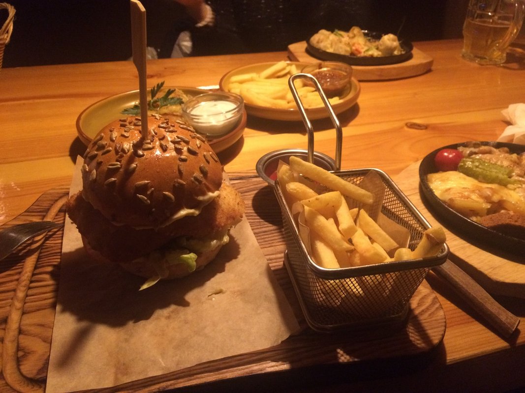 Также мы работаем как отличная бургерная. Мы предлагаем нашим гостям популярные блюда, которые приходятся по вкусу жителям мегаполисов и не только. Мясные котлеты в тесте, жареная картошка - это еда, вышедшая с уличных прилавков, сегодня может посоревноваться по качеству приготовления и вкусу с другими кухнями.
